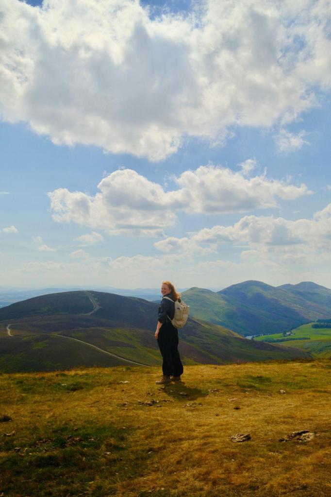 Hier seht ihr mich am Montag, den 25.08.2025, bei einer Wanderung in den schottischen Pentland Hills, fotografiert von Jonas. Die Wanderung war, wie jede Wanderung jemals, anstrengender als geplant. Irgendwann standen wir dann auf einem Gipfel, bei gefühlt Windstärke 80, durchgeschwitzt und mit Sonne auf der Haut. Ich musste lachen wie eine Wahnsinnige – sicherlich ein verstörender Anblick für meine Mitmenschen und ein persönliches Highlight dieser Reise.